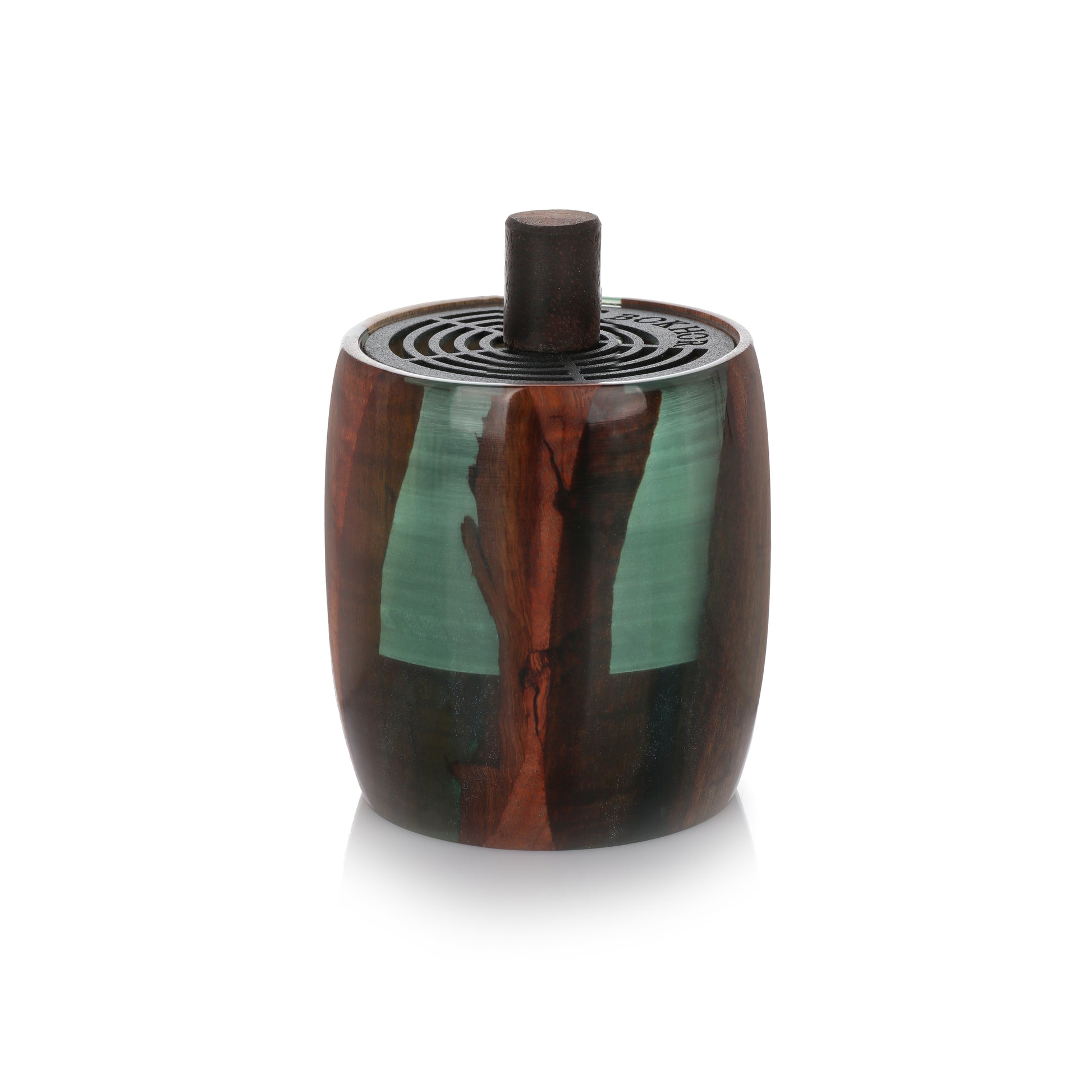 مبخر خشبي أنيق يوحي بتوازن الطبيعة وجمالها.مبخر يتجسد في الوان الغابات والأشجار الخضراء مع وقت شروق الشمس